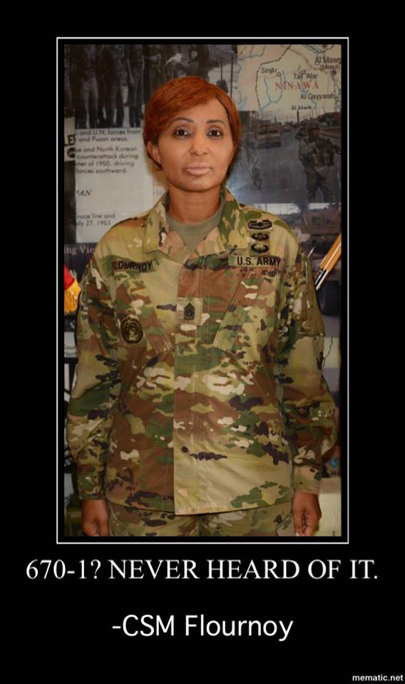 Looks like good old CSM Flournoy is back to her old tricks. Sources have confirmed that she is now going after anyone within the military who posted about her clear violations of AR 670-1 (to civilians these are the regulations that cover the wear and appearance of the uniform, as well as personal grooming standards)
